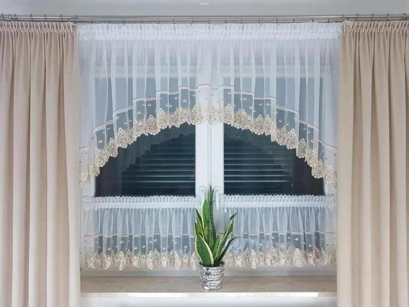 Komplet kuchenny 3cz Firanki gotowe gip pióra (100 x 360 cm(1szt)+50 x180 cm(2 szt), 6szt)