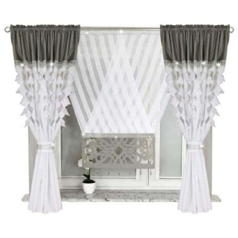 Piękny komplet zasłon z ozdobnymi panelami (Zasłona y 145x160cm x 2 sztuki+ talerza 120x130cm x 1 panel, 6szt)