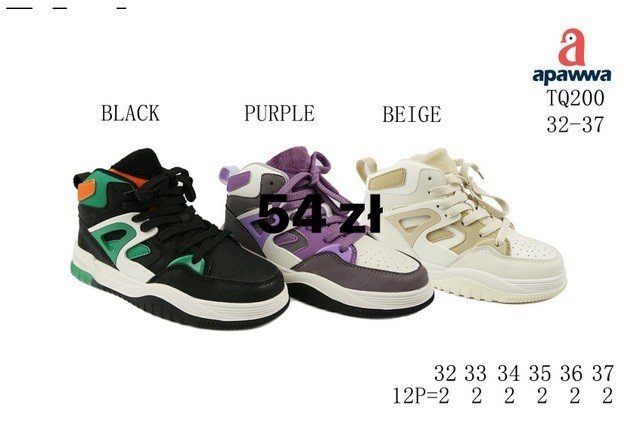 Buty sportowe wiązane chłopięce i dziewczynka (32-37, 12par)