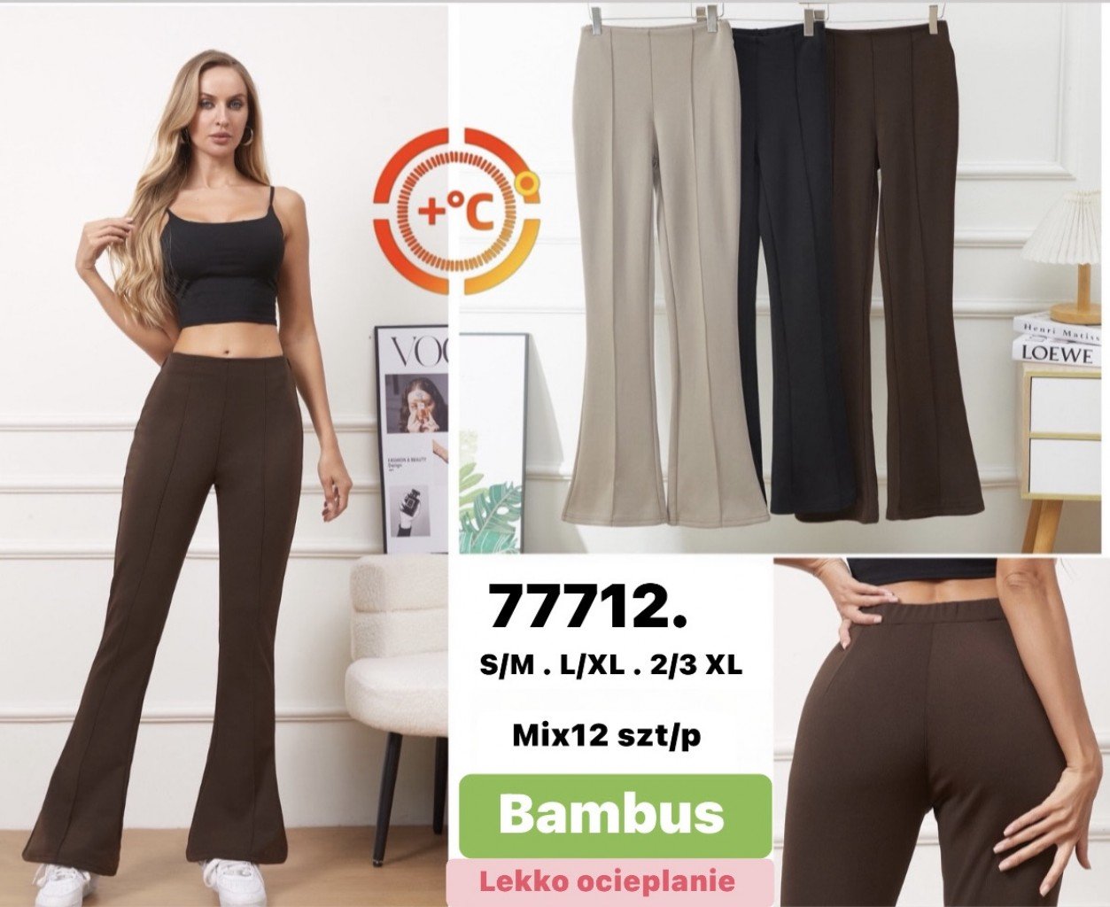 Spodnie legginsy damskie -LEKKO OCIEPLANE (S-3XL, 12szt)